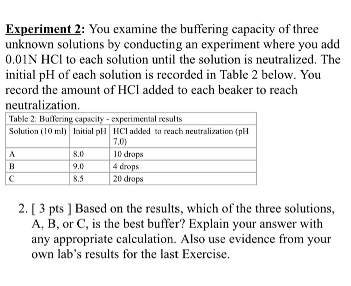 Solved Acid Base Lab Experiment 2 Question 2 Based On Chegg Com